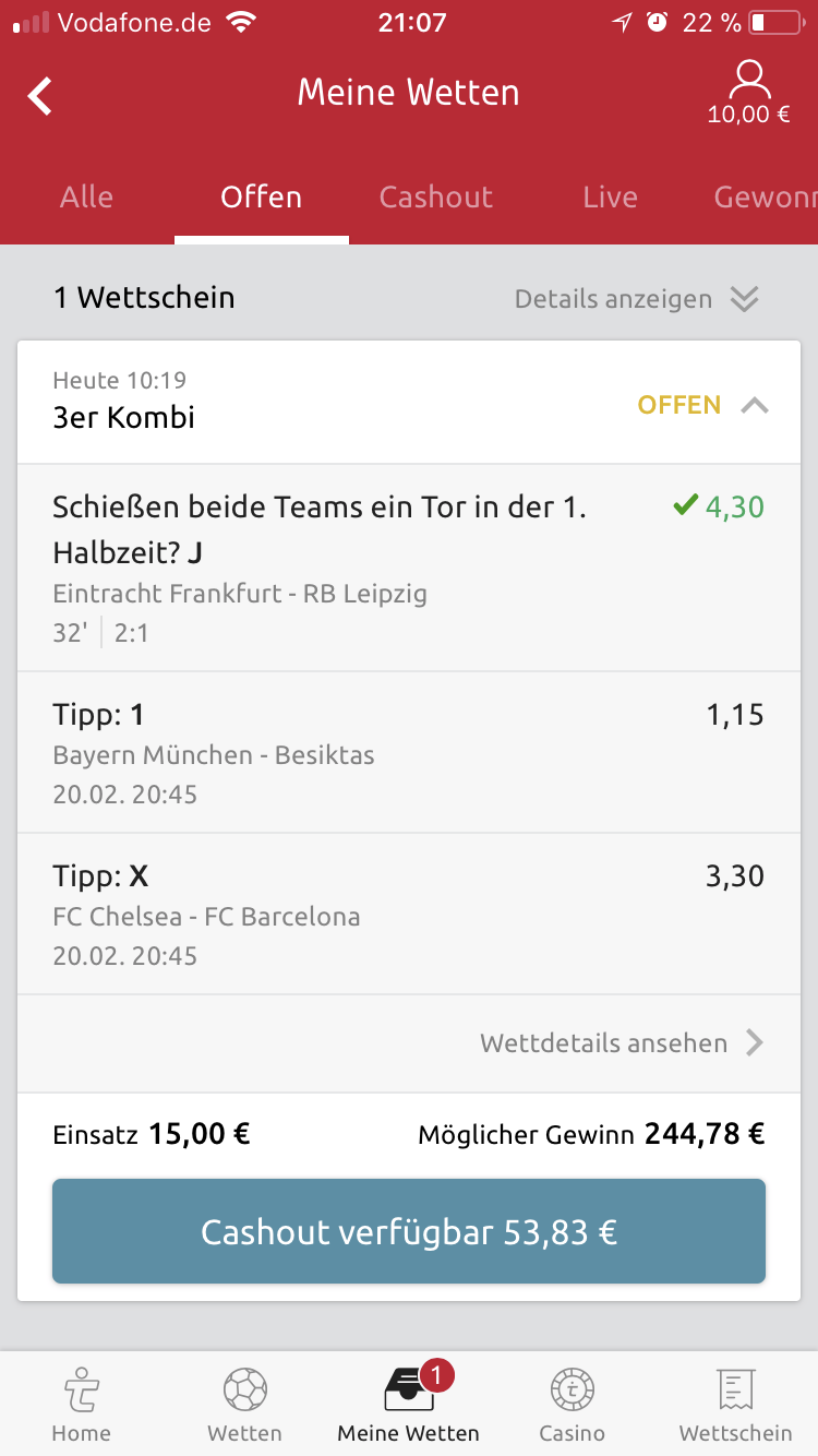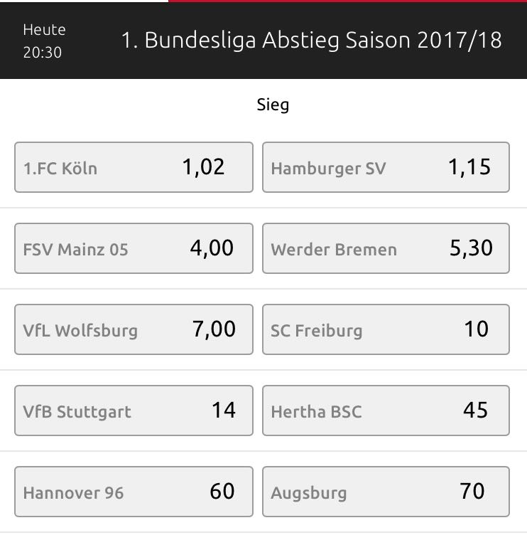 ich hätte ja gesagt absichern mit 1/2 aber da ist die Quote gerade mal 1,33!