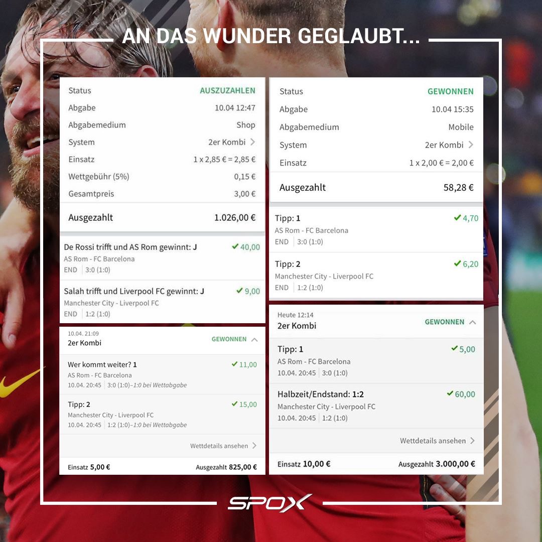 Ein Kumpel von mir hat tatsächlich 50 Euro auf die Roma gesetzt. War ne Quote von 6