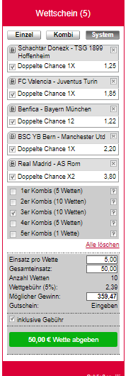 Bei Favre erinner ich die vielen 1:0 Siege. Daher bin ich da ein wenig zurückhaltender mit den Einsätzen. Aber das gleicht die Quote ja aus. Oder am Ende ist beides falsch. We'll see.