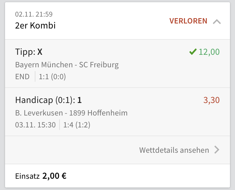 Bei Bayern-Freiburg auf Unentschieden zu gehen ![]()