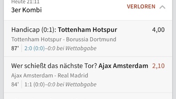 Ich hätte den Tippschein zur Halbzeit 100%ig verkauft. Wären dann sicherlich so 1.000 Euro gewesne :mad: