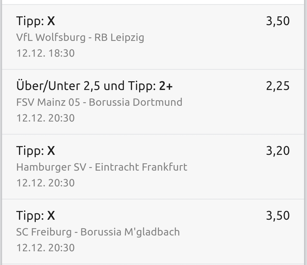 Mir fehlt heute nur noch City und bei Bayern-Köln über 2,5