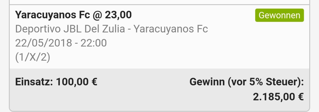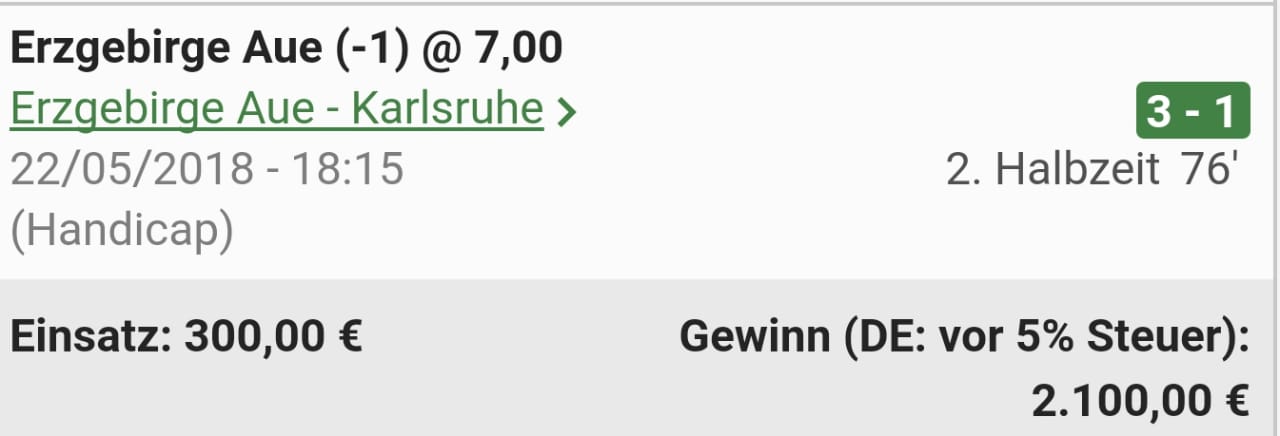Wie immer hier gefordert natürlich 100€ Einsatz