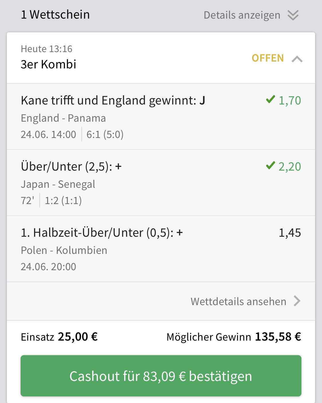 Ich habe bei Polen zur HZ ein X getippt
