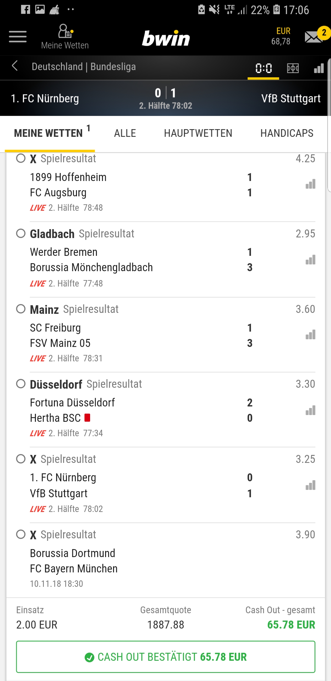 Noch besser als Bayern führte, hab da einen Zehner riskiert. :klatsch: