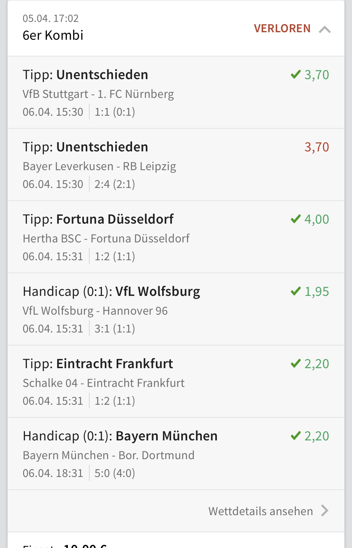 Tipp: Einfach nur das eine Spiel mit Mega-Quote abgeben wenn dir so sicher bist (HSV)...