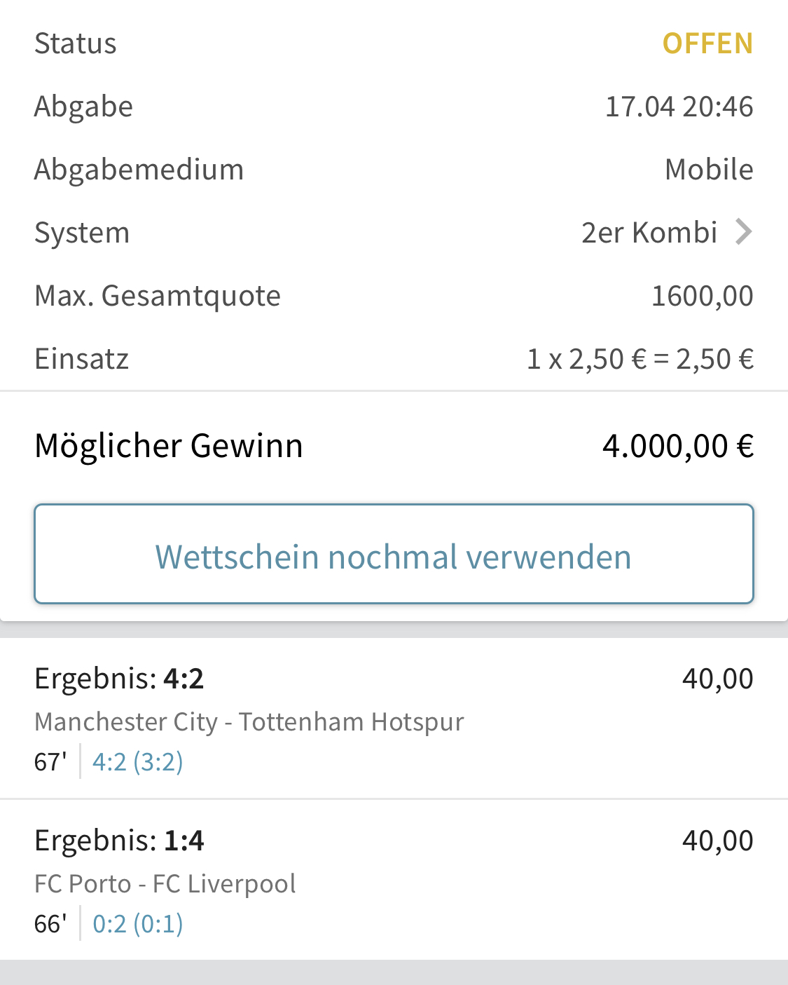 Der Schein lebt noch :winke: Einsatz 2,50 Euro, Auszahlung 2800 euro