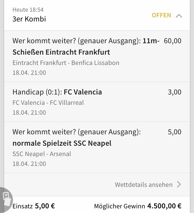 Jetzt steht die Quote mittlerweile bei 30:1 auf Sieg Düsseldorf.