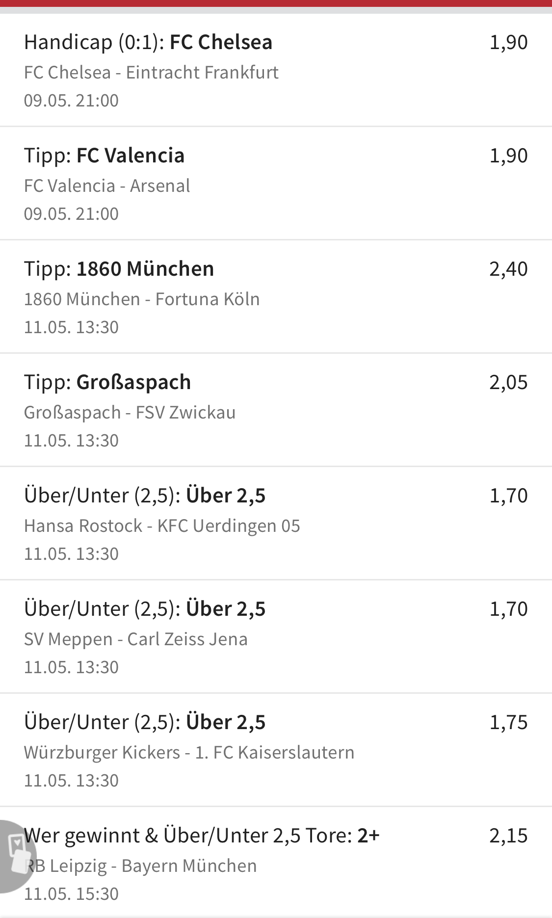 Mein 10 Euro Bonus wurde auf unzählige Wetten aufgeteilt, eine scheint vielleicht tatsächlich durchzukommen:)