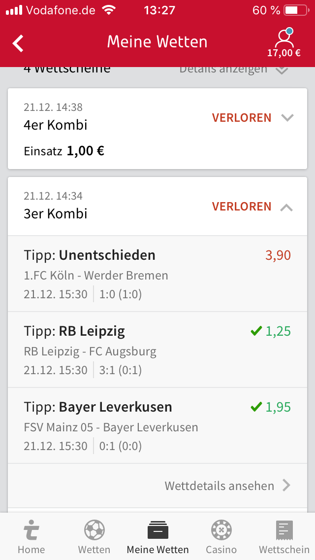 Da sind solche Kracherscheine en masse dabei. Natürlich dann auch "Künstlerpech" wenn der Wettfavorit ne unerwartete Pleite kassiert.