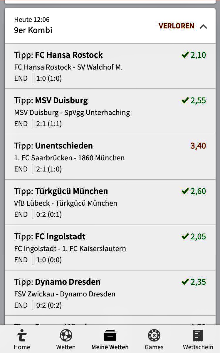 weisst du was mit einer wette läuft - habe ne kombiwette laufen und 2 spiele sind noch an diesem we die anderen waren letztes we :huebscher: