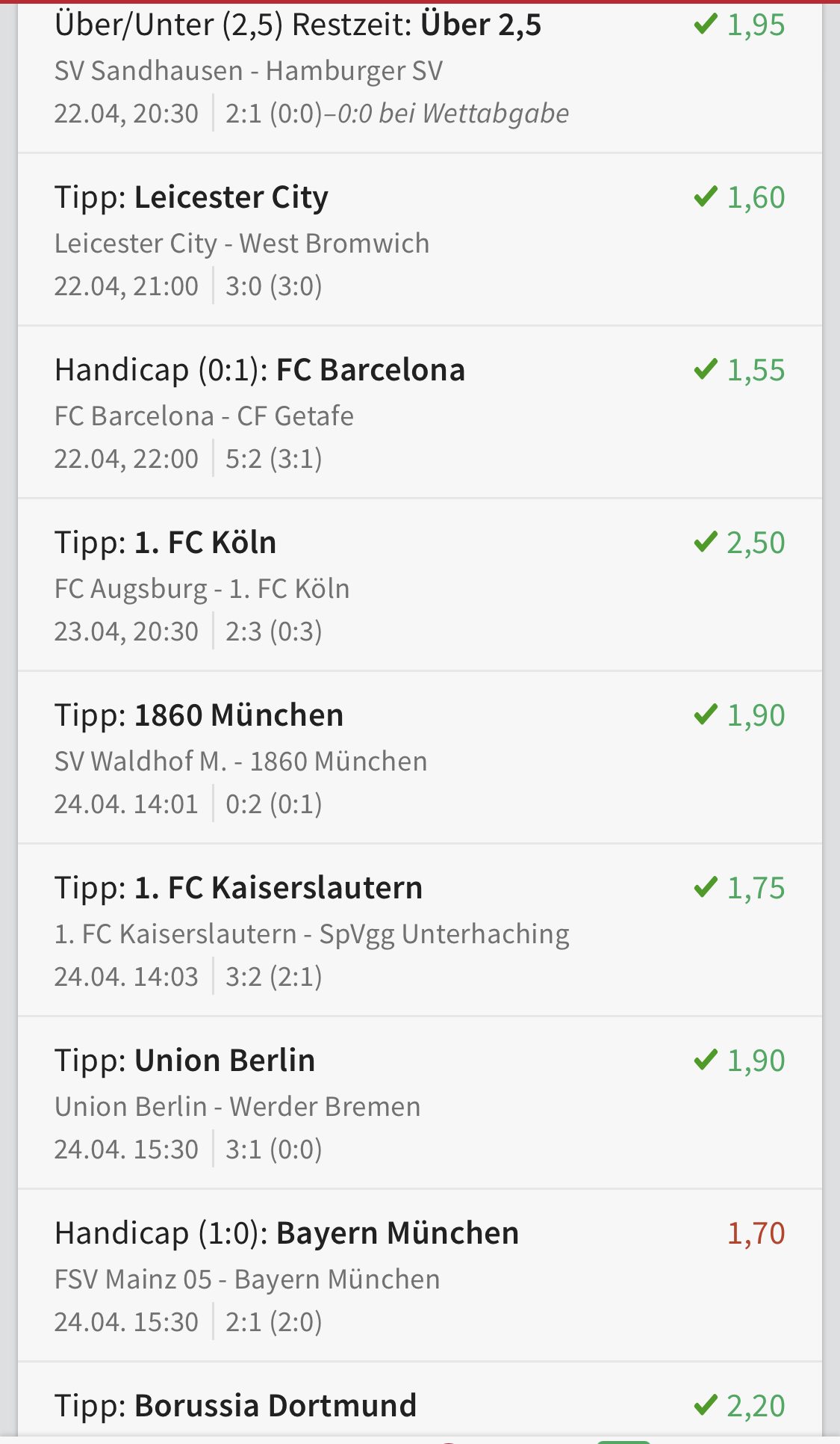 Lief doch gut heute :winke: Bis auf Manu haben alle Favoriten gewonnen. Und auf die setzt man in der EL/CL nicht...