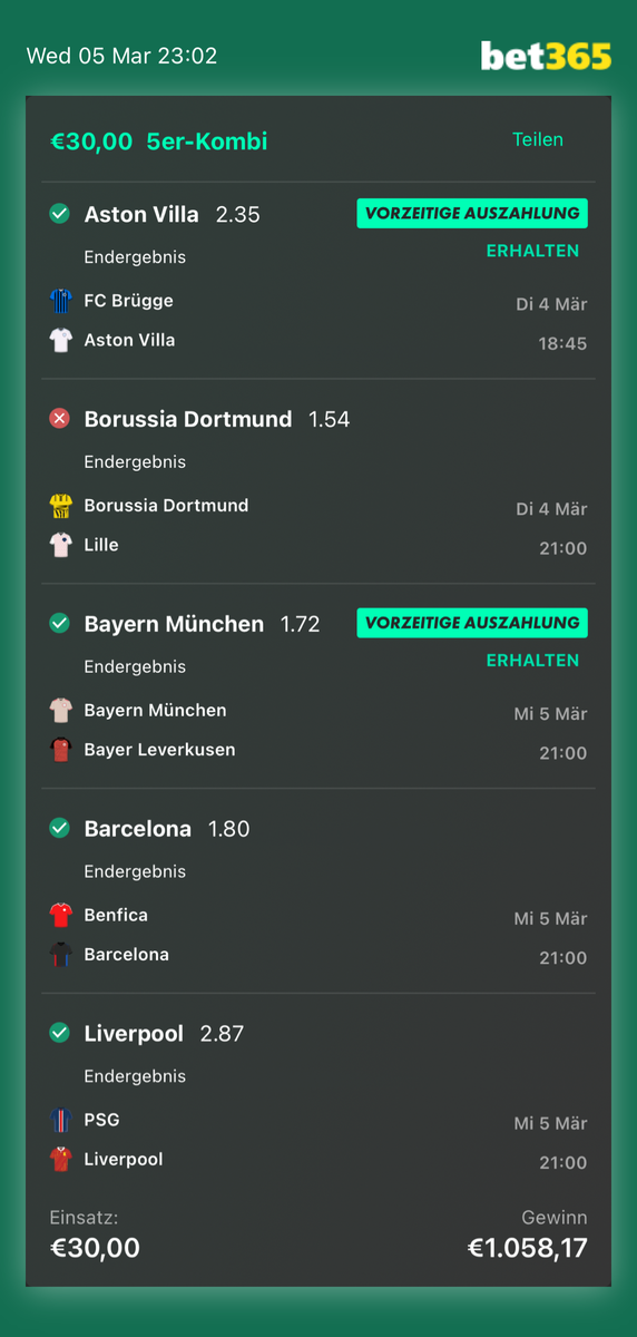 Deswegen hab ich heute mal eine Kleinigkei auf PSV gesetzt
