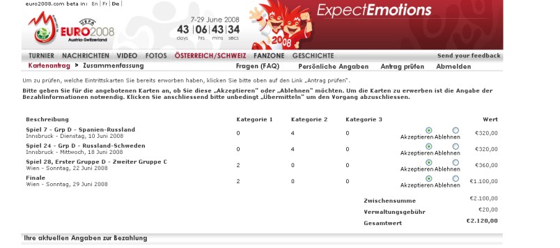 Ich les gerade Tomatenmarkis offenen Brief an die UEFA und seh da was von "goldener Donnerstach gestern", dann hier in den Fred und dann ma ohne Erwartung ins Uefa Portal. 8 Anträge, alle MC und im Letzten, Meinem dann