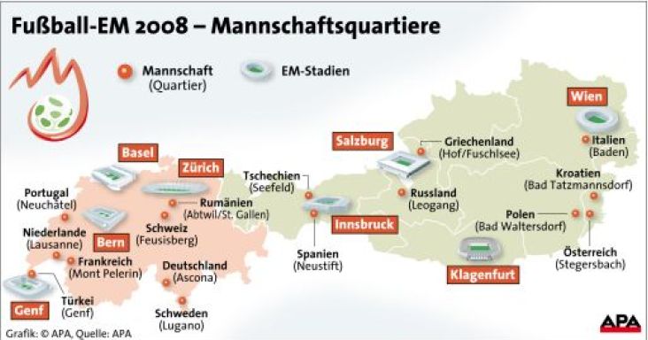 Die Liste aller von der Euro 2008 SA vorgeschlagenen Mannschaftsquartiere ist publiziert unter http://de.uefa.com/newsfiles/496065.pdf.