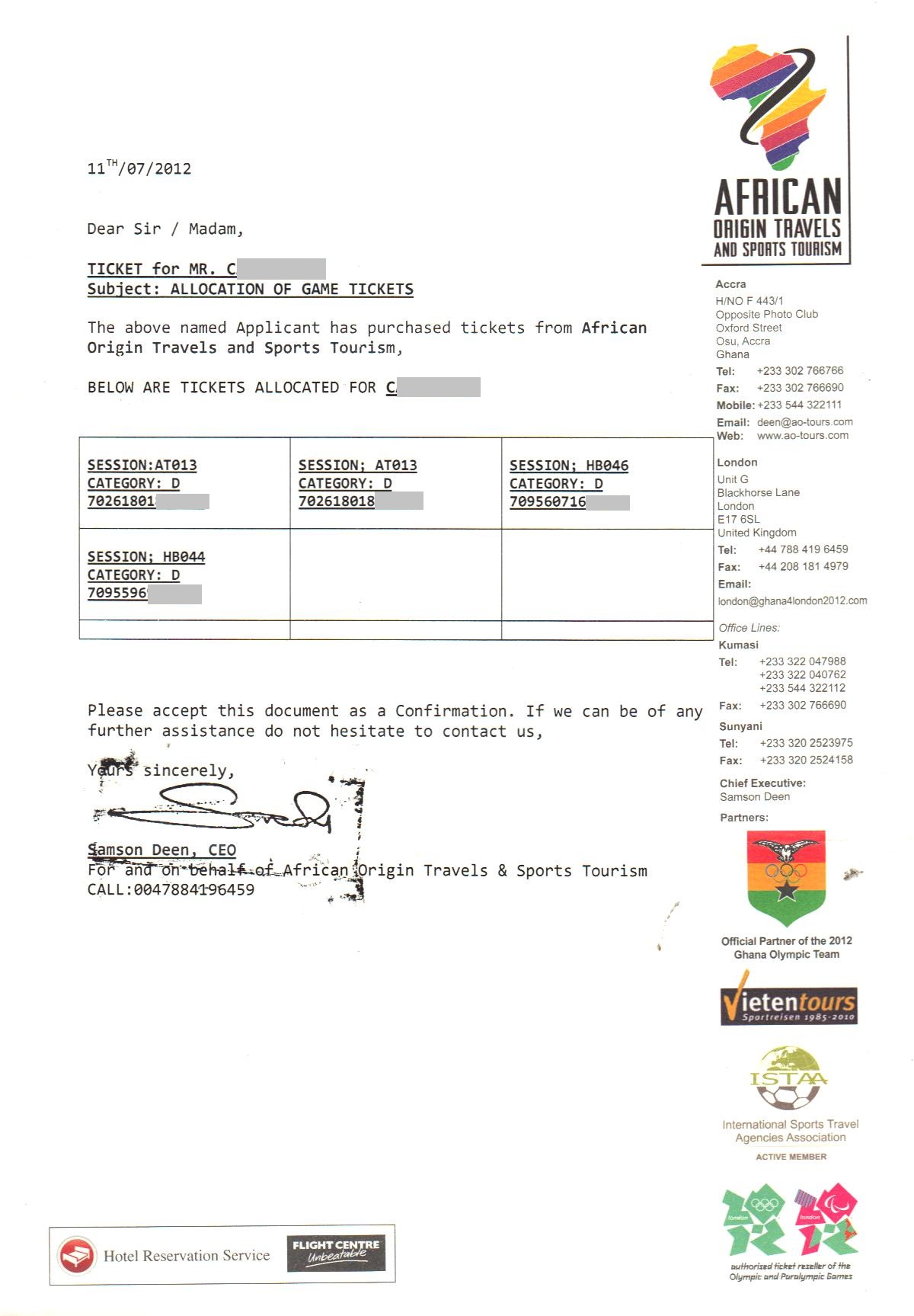 Aufgrund der Schreckensmeldungen aus Ghana in den letzten beiden Tagen habe ich mit Ihm telefoniert. Er hat Kontakt nach Ghana aufgenommen und sein Onkel ist mit meinen Order Nummern inkl. Authorization zu AO Tours.