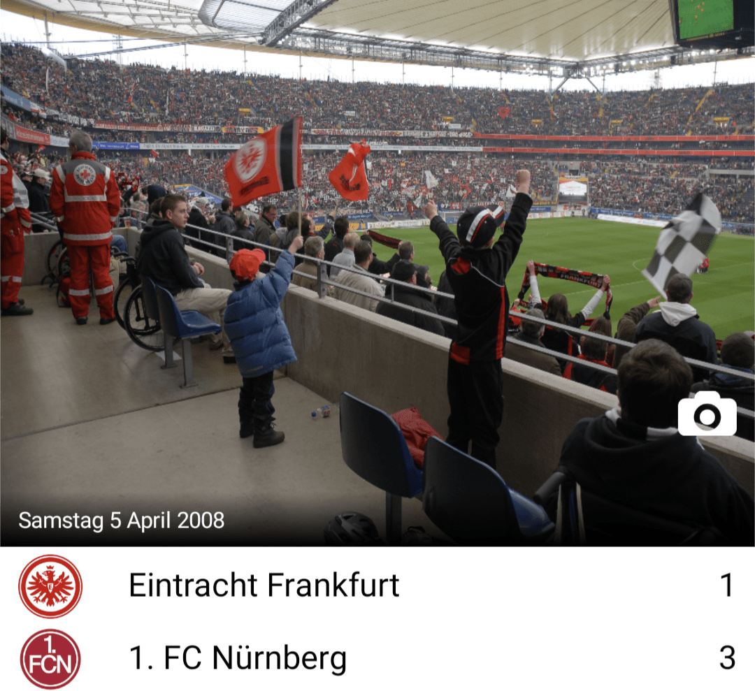 Bereits seit mindestens meinem 5. Lebensjahr (die ersten Fotos von mir bei einem Eintrachtspiel die ich finden konnte waren aus dem Februar 2004 - ein 1:1 gegen Hansa Rostock) gehe ich regelmäßig zu fast allen Heim- und teils auch Auswärtsspielen der Eintracht. Besonders interessieren mich dabei die internationalen Auswärtsspiele, wo ich meine passionen Eintracht und Reisen verbinden kann. So habe ich allein durch Eintracht-Spiele mittlerweile 38 Stadien in 11 Ländern gesehen (wenn man die nicht-Eintrachtspiele mitrechnet sind es ein paar mehr). Leider wird es auch für mich immer schwieriger, Karten für bestimmte Spiele zu bekommen, sodass ich zum Beispiel das Auswärtsspiel bei Sporting Lissabon in der Champions League in einer Bar in Lissabon verfolgen musste. Meistens klappt es aber doch irgendwie und so war ich zum Beispiel auch beim vorerst letzten europäischen Auswärtsspiel beim SSC Neapel im Stadio Diego Armando Maradona dabei. Seit ein paar Monaten interessiere ich mich auch immer mehr für Spiele ohne Eintracht-Beteiligung und genieße es generell, Fußball im Stadion zu erleben. Ich kann für die meisten Eintracht-Heimspiele Tickets bekommen und hätte im Gegenzug gerne ab und zu Karten für diverse andere Spiele :biggrin: .