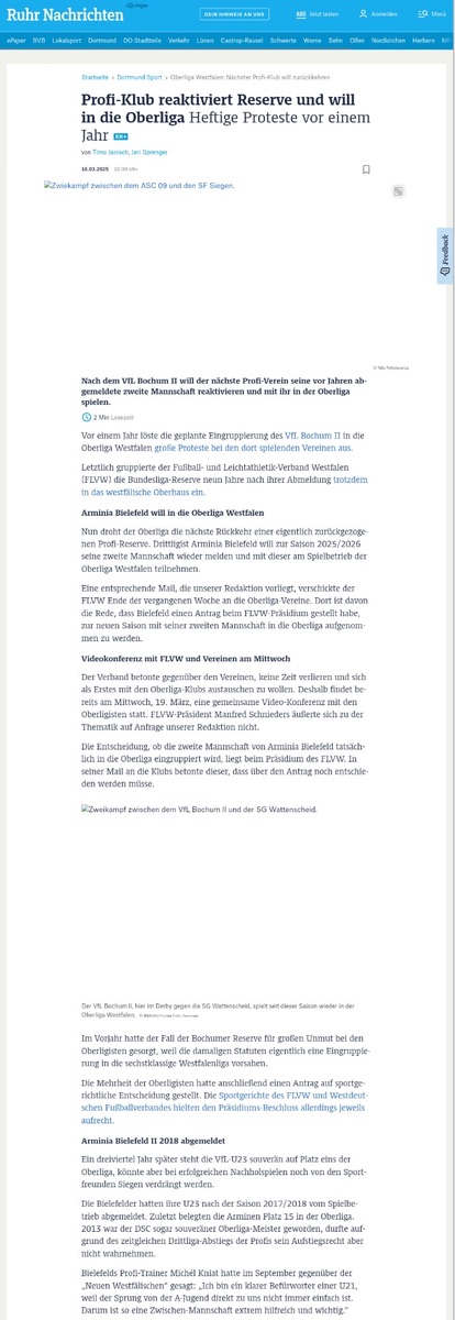 "Demnach erhält die Bielefelder U23 für zwei Jahre kein Aufstiegsrecht und darf damit vorerst nicht in die Regionalliga aufsteigen."