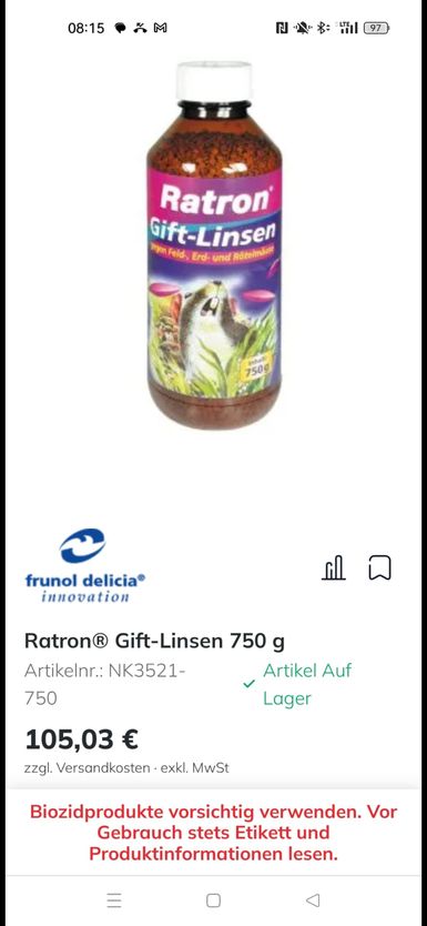 NOCHMAL !!!!! Die Linsen sind !!! HOCH GIFTIG !!! 4-5 Linsen in das Loch und das Loch VERSCHLIEßEN und zwar richtig ! Nicht Zieltiere könnten sterben !!!!!!!!!