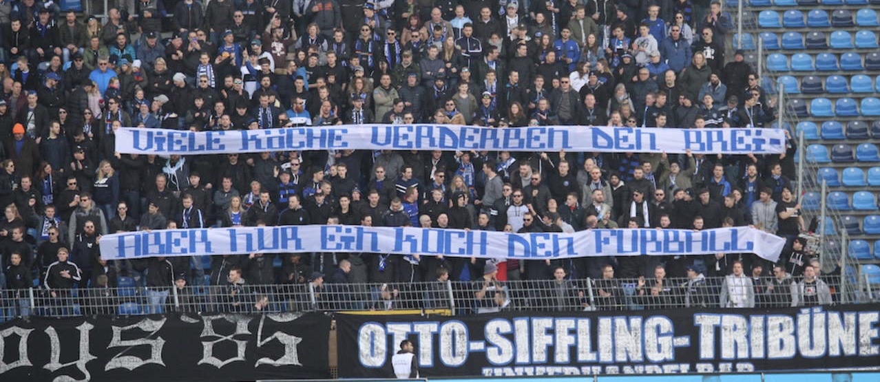 Während des Waldhof-Heimspiels gegen den FSV Frankfurt ist ein Fan-Banner gegen DFB-Vizepräsident Rainer Koch zu sehen.