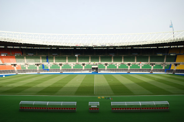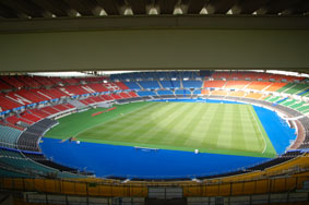 Foto: Sektor A: die blaue Streifen sind um die Fans zu trennen. Ganz komische Sachen... die nur viele Plätze wegnehmen...