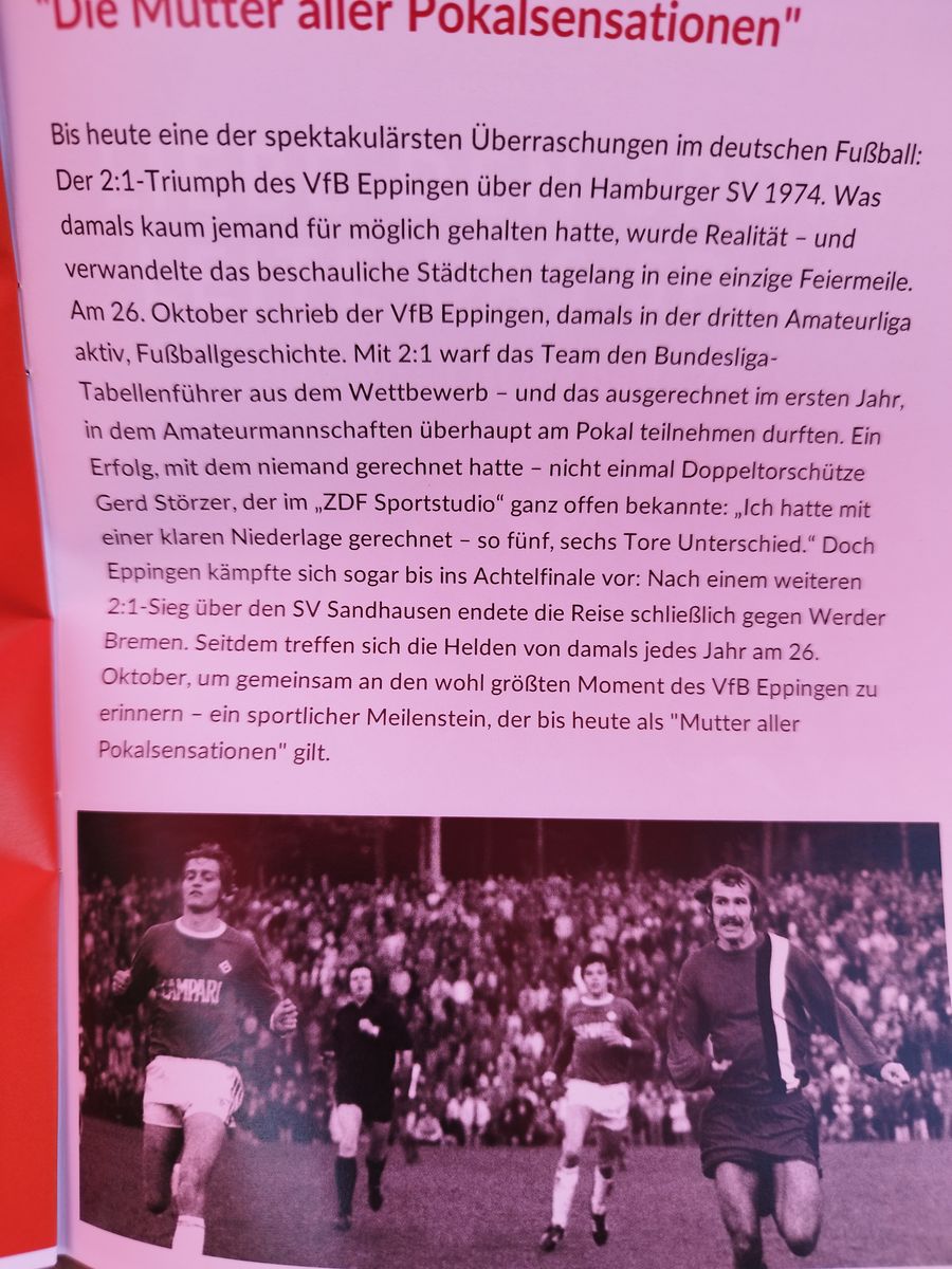 Eppingen: vor ca. 50 Jahren hat Eppingen als Amateurclub den HSV aus dem DFB Pokal geworfen.