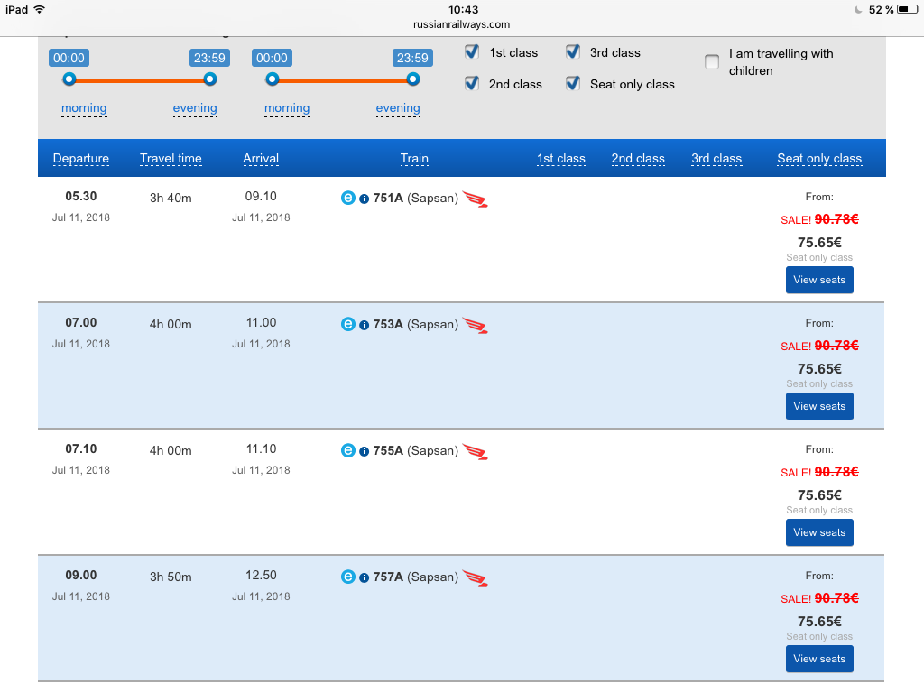 Hat jemand eine Seite wo man die Abfahrt zeiten der Züge sehen kann? Und welche Züge alle vom Halbfinale 1 zurück nach Moskau fahren?